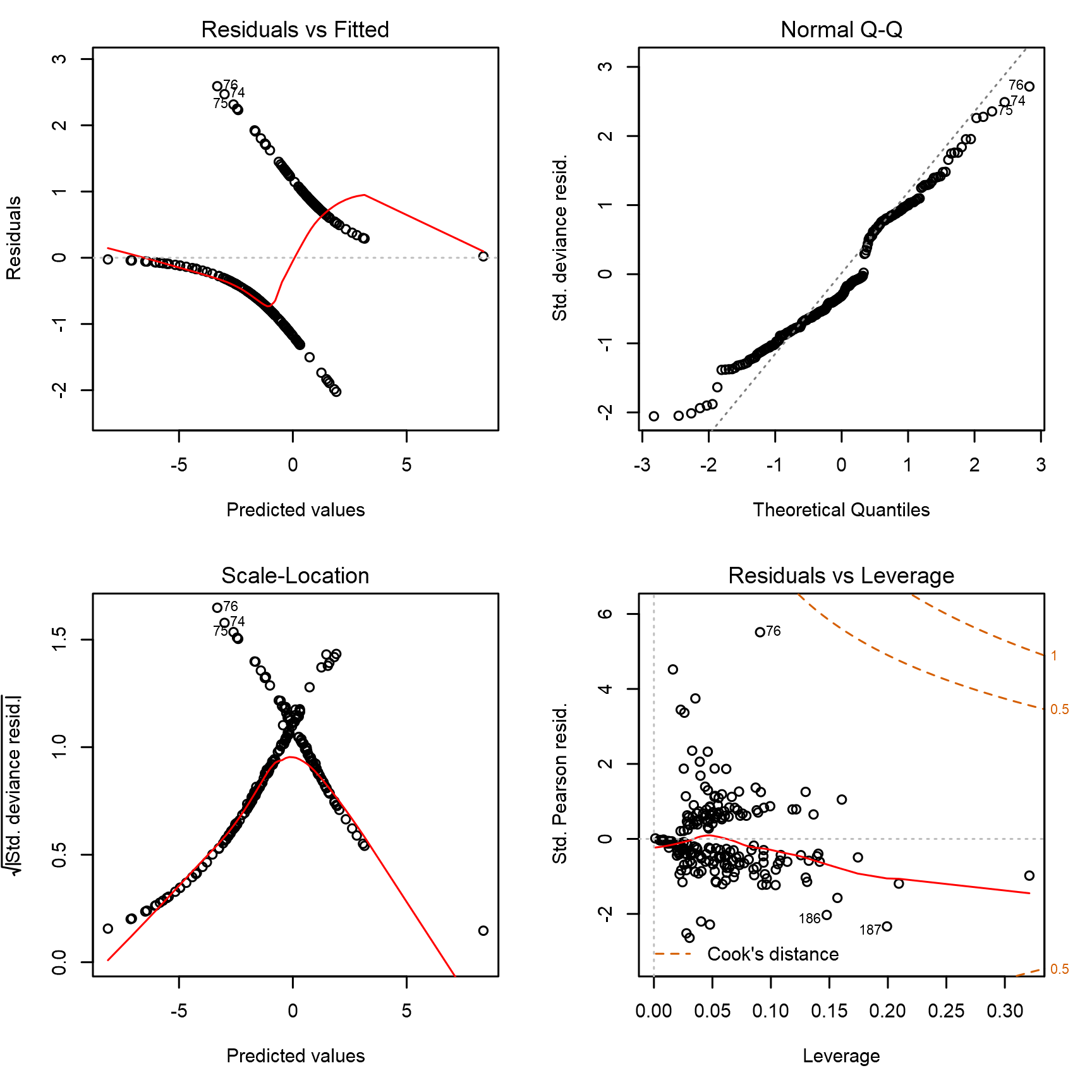 Null deviance: 279.99 on 211 degrees of freedom Residual deviance: 193.3 on 200 degrees of freedom