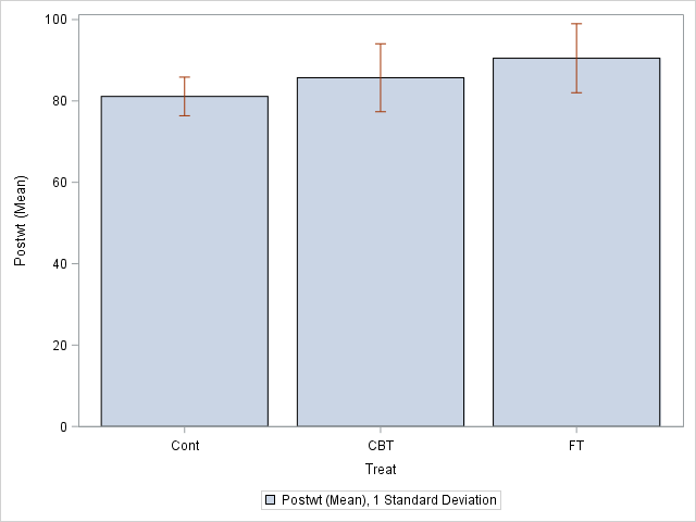 VBAR treat / RESPONSE=postwt STAT=MEAN LIMITSTAT=STDDEV;