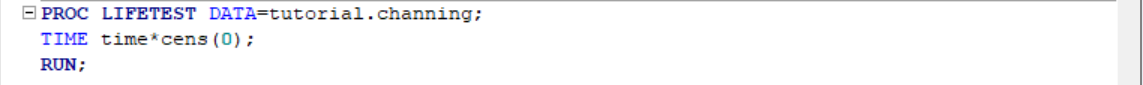 Now we can invoke LIFETEST to get a first glance at our survival: