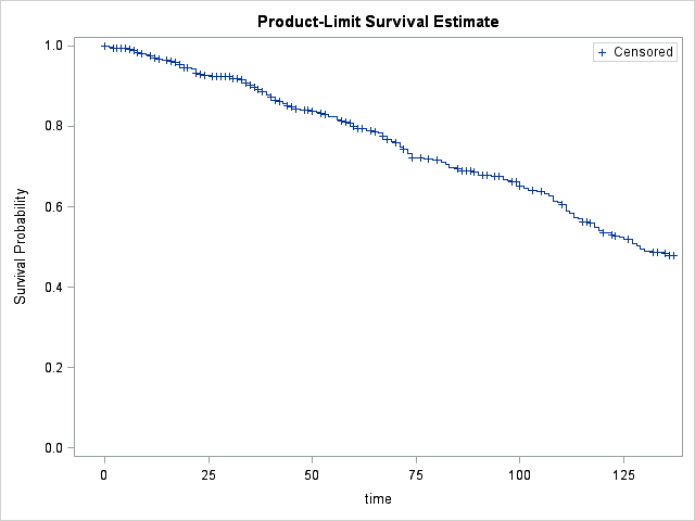 Let's first run our LIFETEST procedure in its simple form and see what our survival graph looks like.