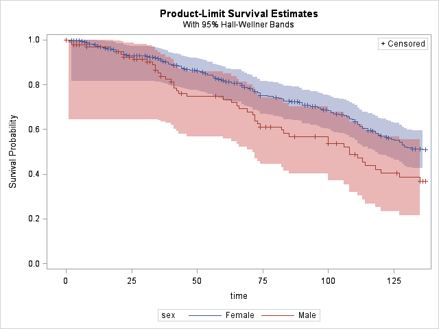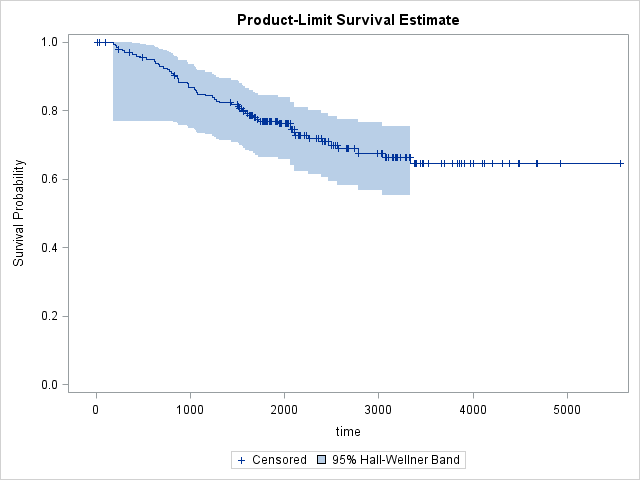 In order to see confidence bands, we need to specify what type of confidence band we'd like to see. Choices are Hall-Wellner (HW) and Equal Precision (EP)