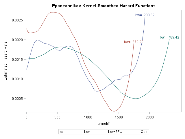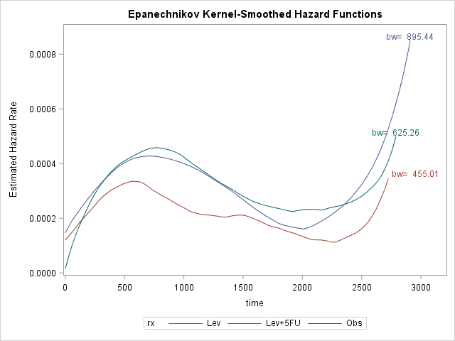 PROC LIFETEST DATA=tutorial.colon PLOTS=HAZARD;