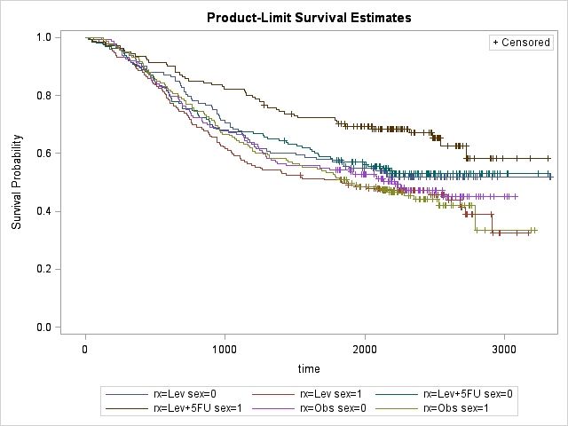 CLASS rx(REF='Obs') differ(REF='1') extent(REF='1') surg(REF='0') sex obstruct perfor adhere;