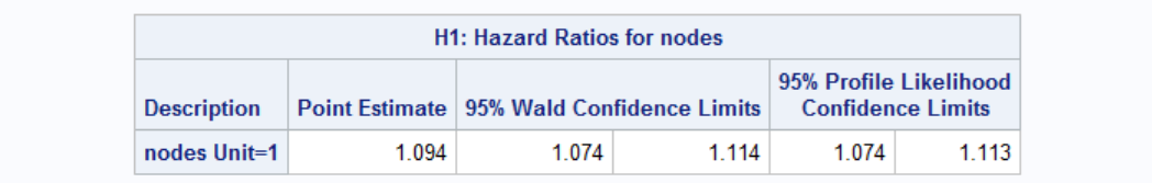 HAZARDRATIO 'H1' nodes / UNITS=1 CL=BOTH;