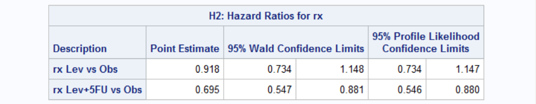 HAZARDRATIO 'H2' rx / DIFF=REF CL=BOTH;
