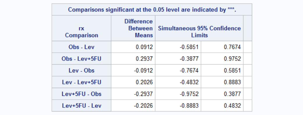 rx: Treatment - Obs(ervation), Lev(amisole), Lev(amisole)+5-FU.