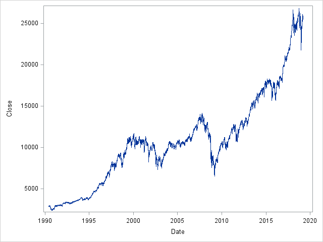 Take a look at the historical Dow Jones Indices below (you can download the data from here).