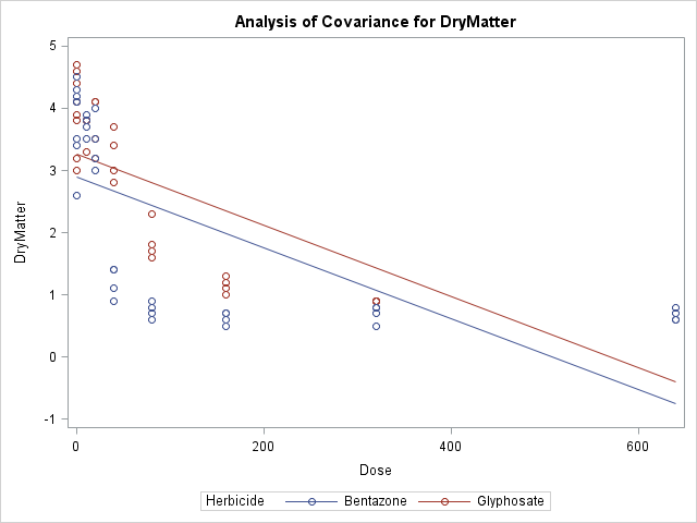ANCOVA Example (1 CoVar): Potency of two herbicides
