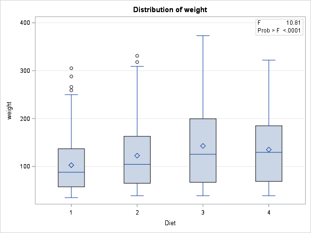 | Diet | 3 | 155862.6576 | 51954.2192 | 10.81 | <.0001 |