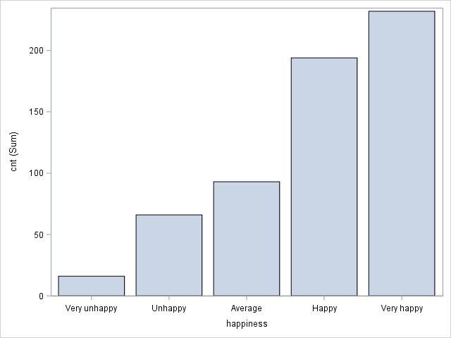 VBAR happiness / RESPONSE=cnt STATSUM;