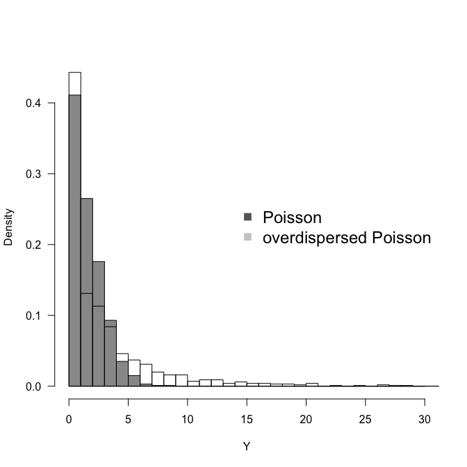 Our suspicions were correct; there is overdispersion. There are various distributions to implement instead of Poisson: