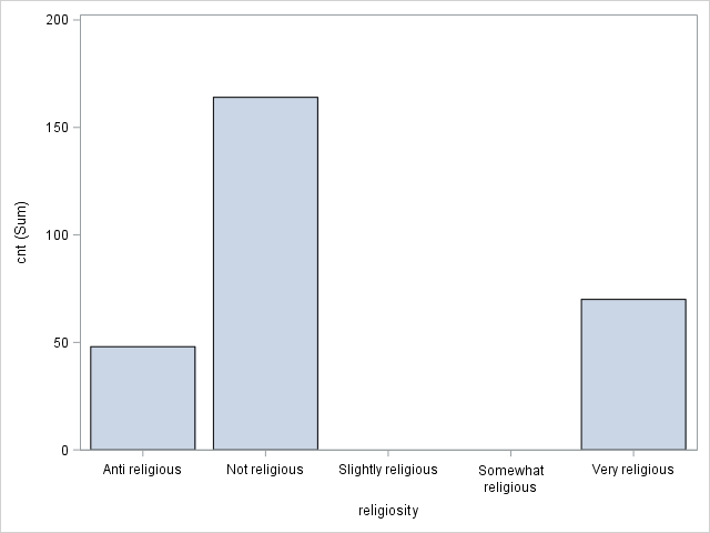 VBAR religiosity / RESPONSE=cnt STATSUM;