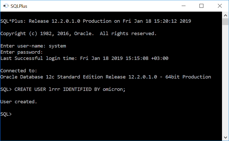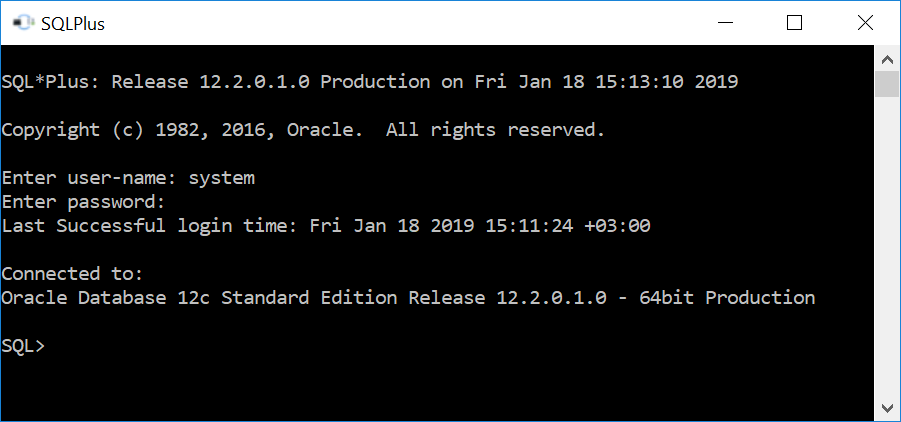 Open SQLPlus. You will be asked user credentials. Enter your credentials.